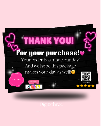 “Add a heartfelt touch to your business with this adorable thank you card template! Thoughtfully designed to show appreciation, it’s the perfect way to express gratitude to your customers and make them feel special. Whether you’re packaging orders, sending notes, or adding a personal touch to your brand, this template helps you create a lasting impression with style and charm!”