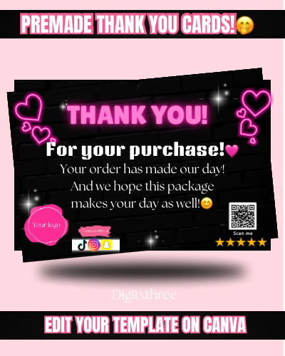“Show your customers some love with this cute thank you card template! 💕 Perfect for adding a personal touch to your business, it’s an easy and stylish way to express gratitude and leave a lasting impression. ✨💌”